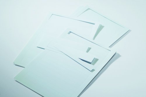 Antireflektierende Schutzscheibe, weißes Kunststoffetikett zum Bekleben sowie Schrauben und Dübel. Zwei seitliche Abschlussblenden (aus tech. Gründen nur bei Best. Nr. 310877 silber eloxiert möglich).