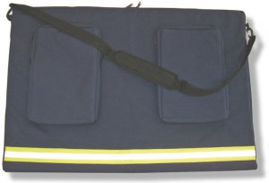 Stabile Schutztasche mit gepolstertem Schultergurt für Lagetafel und Zubehör. Wetterfest mit 2 mittig aufgesetzten Taschen für Zubehör.