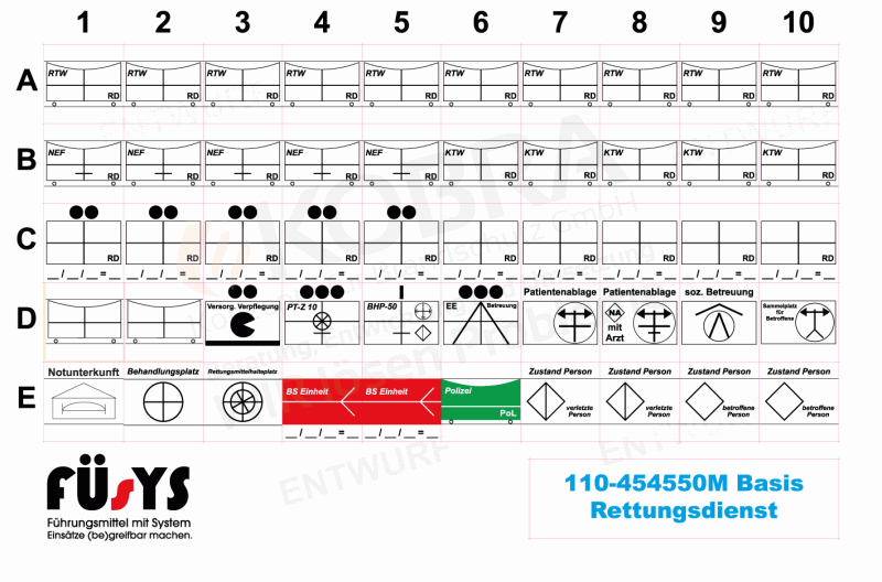 40 taktische Zeichen in der Größe 45 x 45 mm Einsatzfunktionen Rettungsdienst, beschreibbar und abwischbar