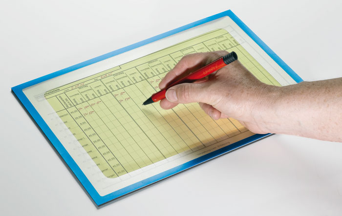 Magnetische Ausführung mit großem Ausschnitt für handschriftliche Eintragungen direkt auf dem Blatt
