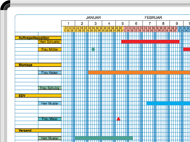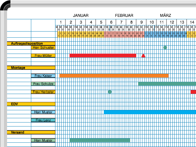 - Planung von bis zu 70 Personen oder Objekten im Halbjahresüberblick