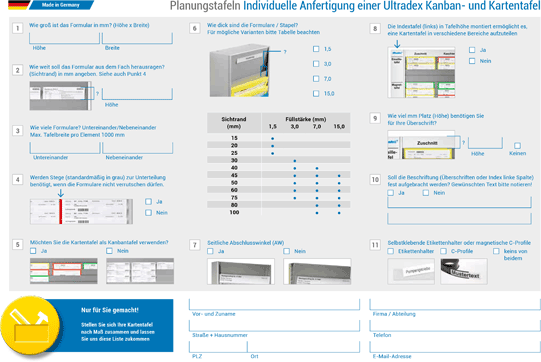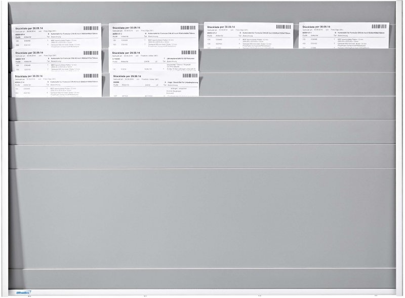 Bei diesen Tafeln können die Fächer nur untereinander angeordnet werden. Der Sichtrand liegt bei diesen Tafeln immer bei 40 mm und die Füllstärke bei 3 mm.